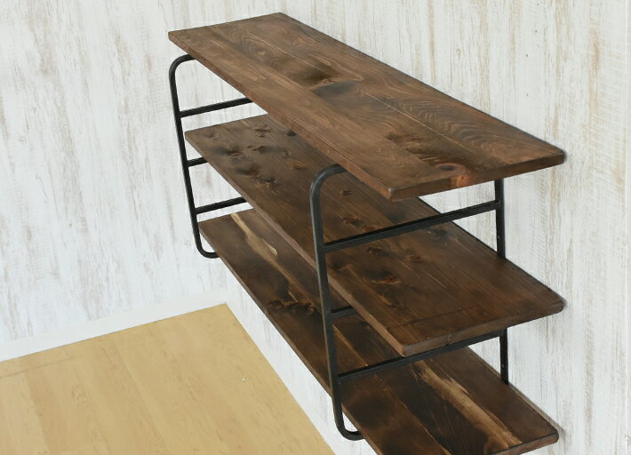 送料無料 アイアン ウォールシェルフ テレビボード モダン 木製ラック 棚受け 壁面収納 ディスプレイ棚 テレビ台 TVボード 吊棚 吊り棚 壁棚 200cm おしゃれ 本棚 アイアン家具 オーダー家具 ブルックリンスタイル 男前インテリア アンティーク ウッド 壁 壁掛け