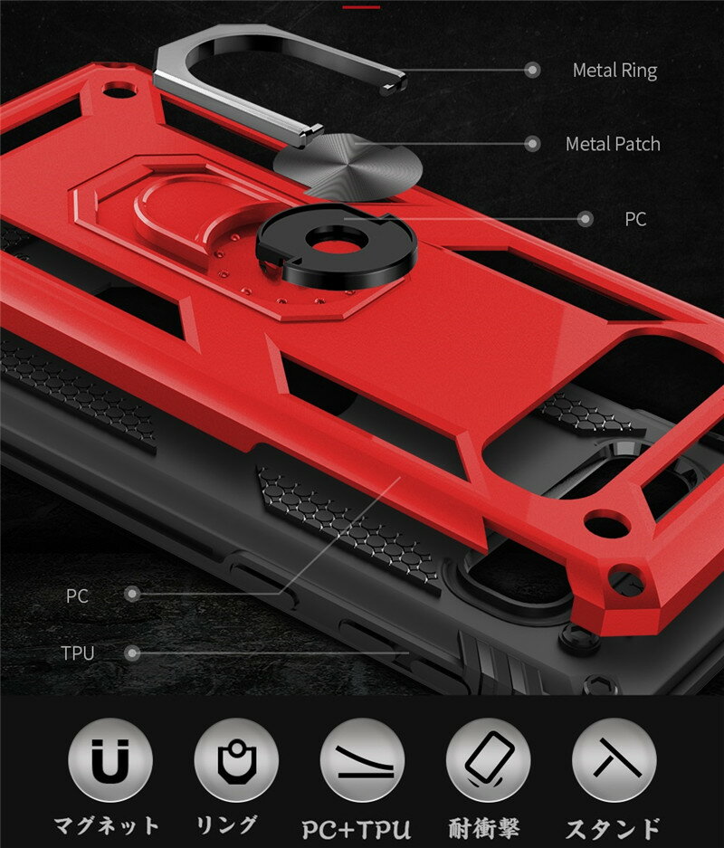 ■カラーバリエーション: ブラック/ネイビー/ピンクゴールド/ゴールド/シルバー/レッド ■素材: PC+TPU ■特徴: 耐衝撃、スタンド機能、落下防止リング ■ストラップホール: あり ■備考: 商品の注意事項につきましては、必ず下記リンクをご確認ください。