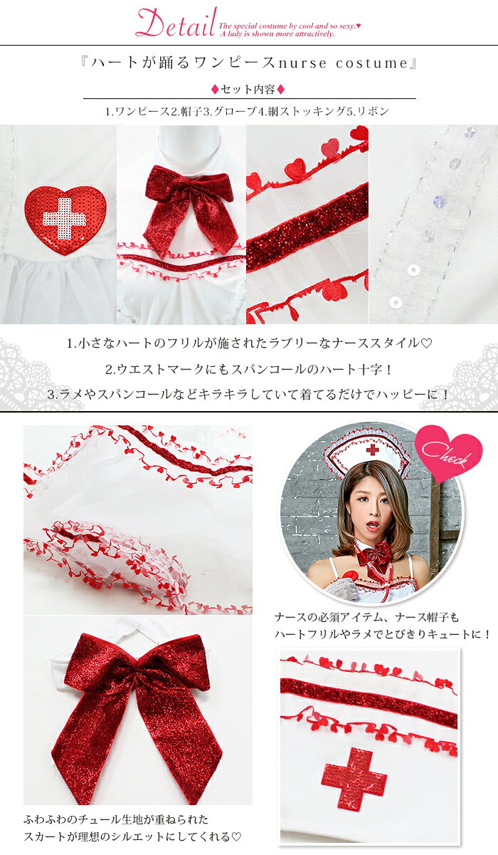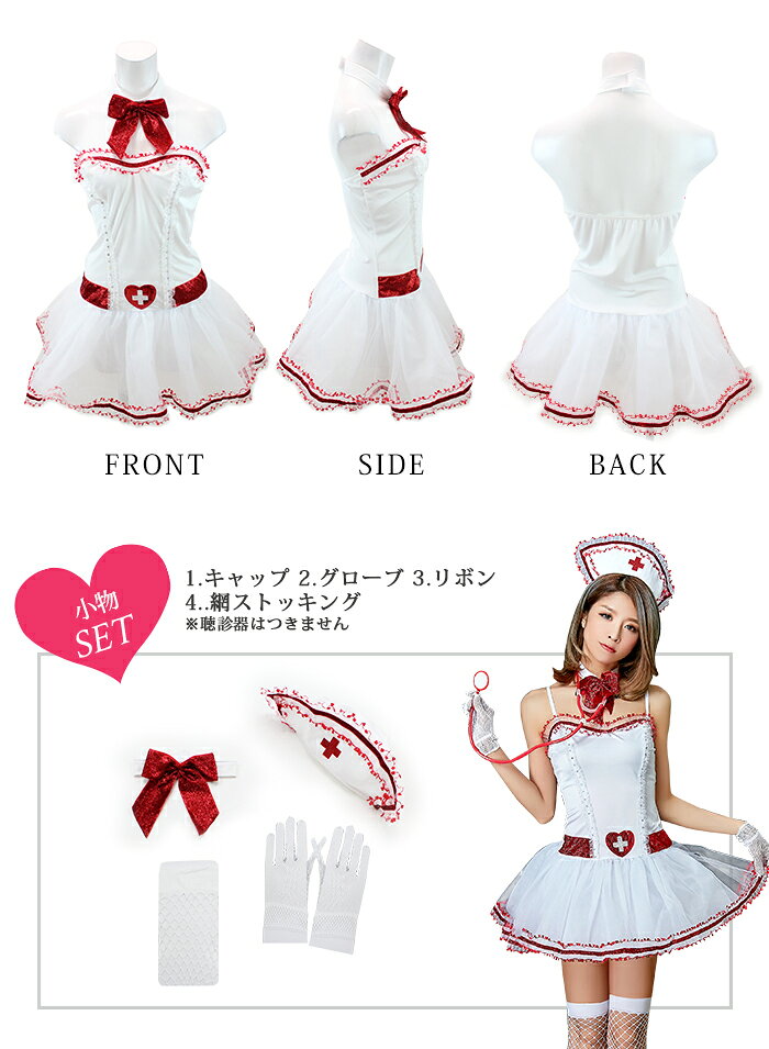 ハロウィン コスプレ ナース服 衣装 コスチューム 制服 セクシー コスチューム ハロウィン コスプレ ナースキーワード:コスプレ ナース コスプレ衣装 セクシー 制服 衣装 大人用セット内容1:ヘッドアクセ 2:ワンピース 3:網ニーハイストッキング 4:チョーカー 5:網グローブ表記サイズFREE実寸【チョーカー】首回り:34-36【ワンピース】わき下:54(内、29-スカート切り替え)バスト:68-86ウエスト:65-70スカート切り替え部分:70-80商品詳細●90%POLYESTER 10%ELASTANE(POLYURETHANE)●スカート部分ネットチュールパニエ内蔵●伸縮性若干有り●透け感有り●肩紐付け部分有り●チョーカーマジックテープで付け外し可宅配便配送【 コスプレ ポリス 】♦︎ポリス・婦人警官(婦警・女性警官・警察)・SWAT・スワット・アーミー・囚人・軍服などかっこいいコスプレ。